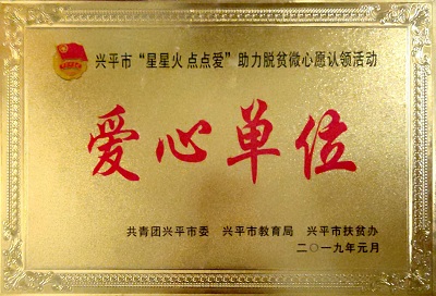 2019年1月,在兴平市“星星火,点点爱”助力脱贫微心愿认领活动中,花火视频APP官方下载最新版漆被共青团兴平市委、兴平市教育局、兴平市扶贫办评为“爱心单位”