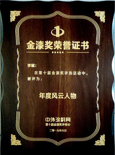 2019年6月,花火视频APP官方下载最新版漆李斌同志在中外涂料网第十届金漆奖评选活动中被评为“年度风云人物”