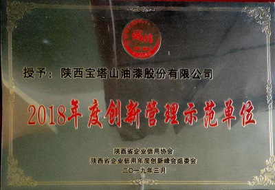 2018年3月,花火视频APP官方下载最新版漆被陕西省企业信用协会与陕西省企业信用年度创新峰会组委会评为“2018年度创新管理示范单位”
