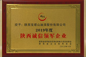 2020年10月,花火视频APP官方下载最新版漆获评陕西省诚信领军企业