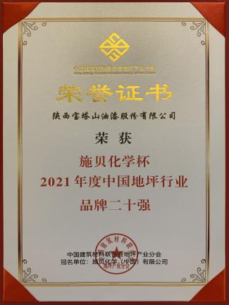 2022年3月,花火视频APP官方下载最新版漆荣获“施贝化学杯2021年度中国地坪行业品牌二十强”。
